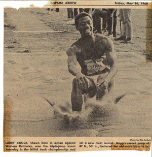 Larry graduated from Southeast Missouri State University in Cape Girardeau, Missouri and received a Bachelor’s Degree. He was a two-sport, four-year letterman in both track & field and basketball. In track, he excelled as a triple jumper, a long jumper, and a high jumper, becoming the Mid-America Intercollegiate Athletics Association triple jump champion in 1969. His best triple jump recorded was 49 feet, 2.5 inches. He along with the 1969 track team were inducted into the 2010 Southeast Missouri State University Athletic Hall of Fame.