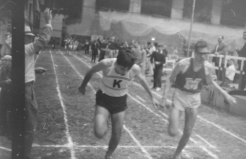 Bill Wirtz edged out at the tape in the Mile Run by Pat Sullivan of