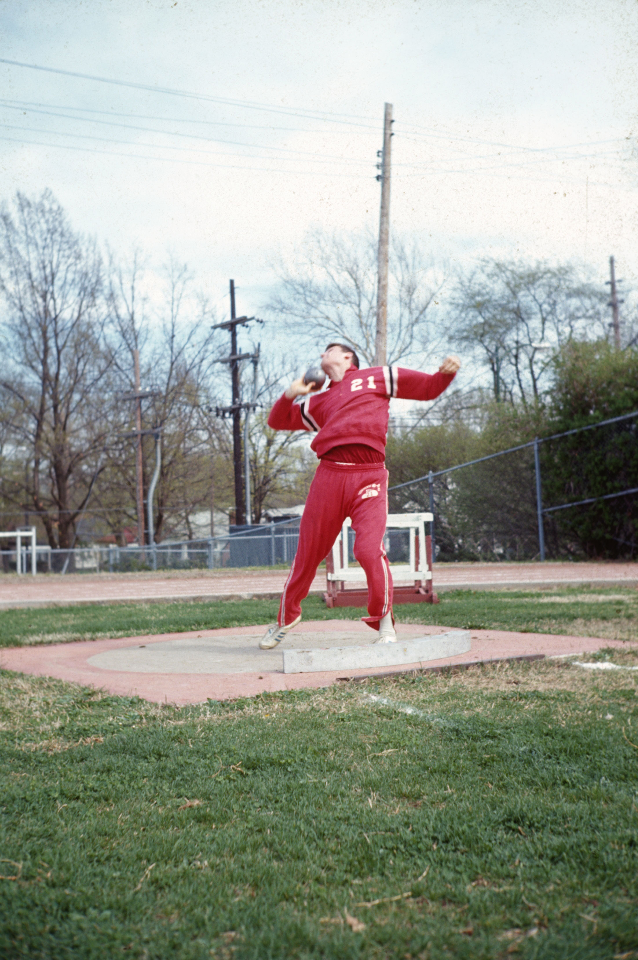 Terry Coff puts the shot in 1967 at the Springfield Relays.